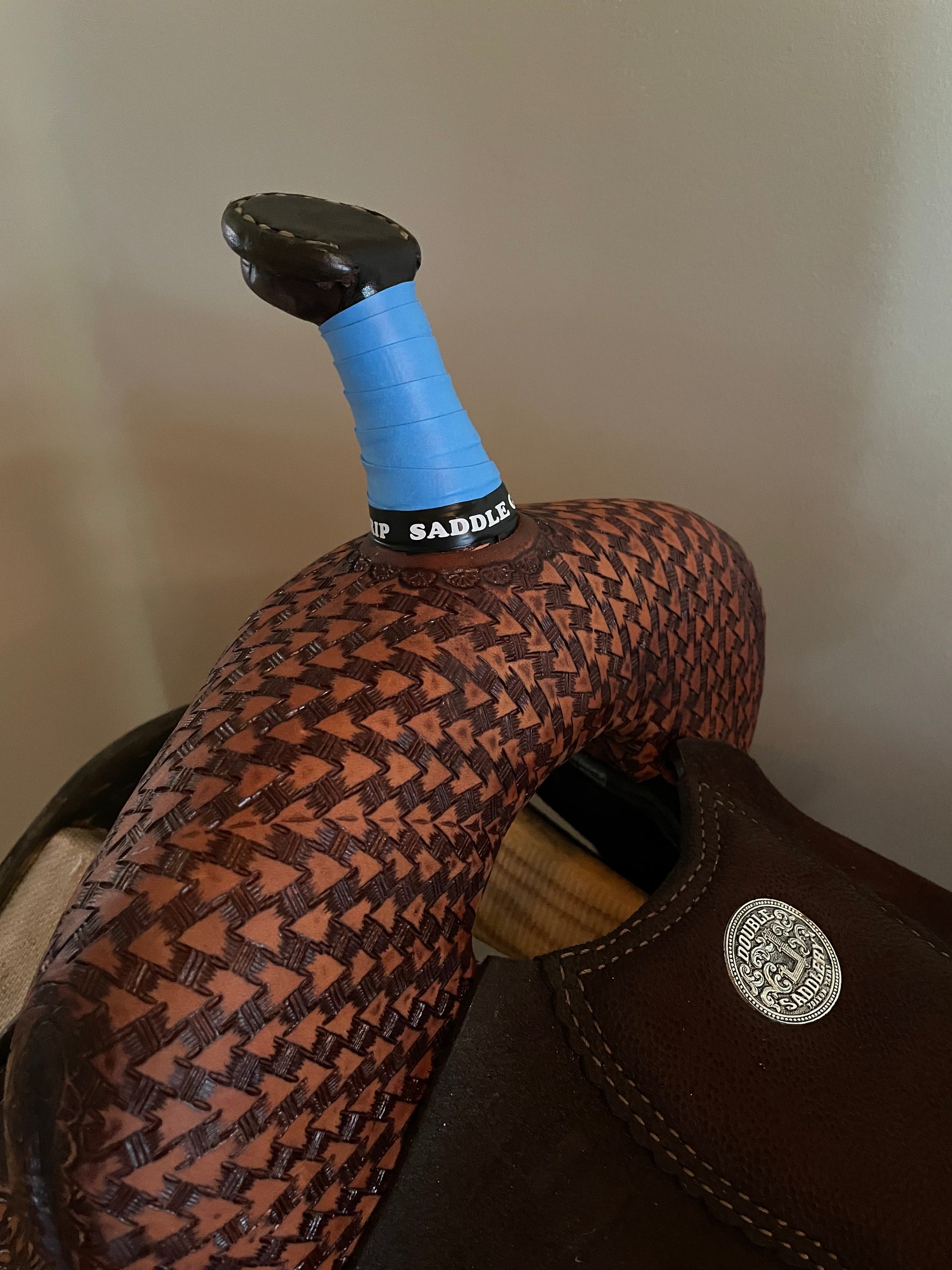 Mr. Moody Blues Saddle Grip 3 Pack. Saddle Grip is a saddle horn overwrap that increases your grip, helps protect your horn, and adds a pop of color to your saddle.
